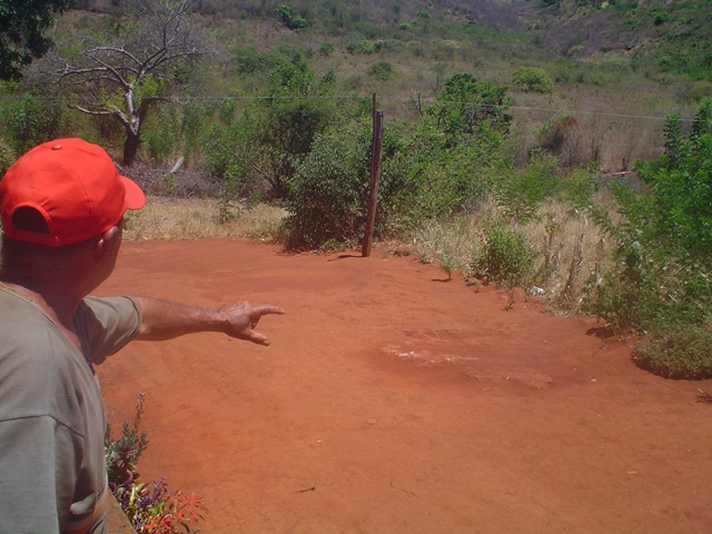 Entrevistado apontando onde a polícia estava. A casa da Tataíra está nas costas do fotógrafo – Foto – Rostand Medeiros