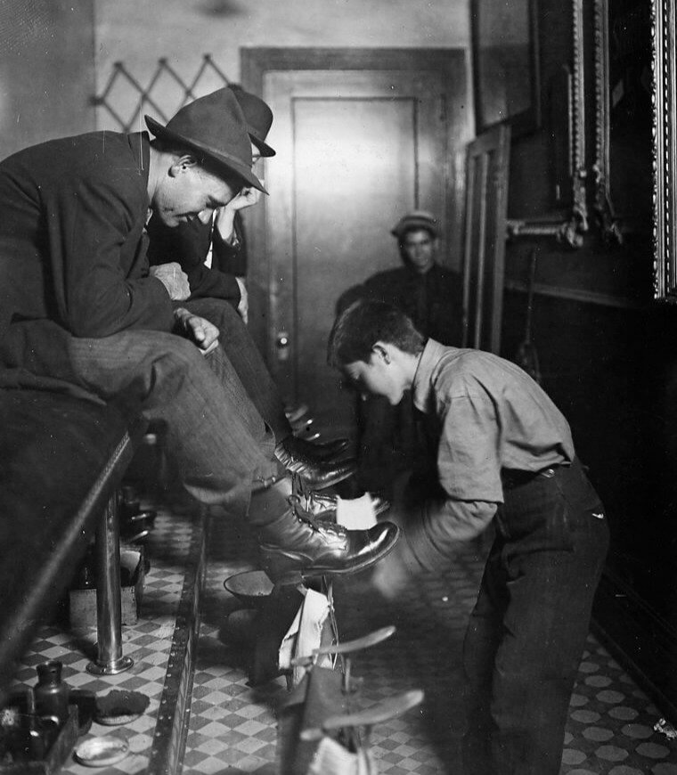 Os engraxates estavam por toda parte durante toda a era vitoriana. Muitas vezes você os via com um pequeno bloco para você colocar seu sapato que eles poliam, limpando toda a sujeira da rua fazendo-os parecer novos. No entanto, a graxa de sapato mais popular e acessível usada era um produto químico forte: o nitrobenzeno, que poderia causar sérios problemas de saúde, especialmente após exposição repetida.