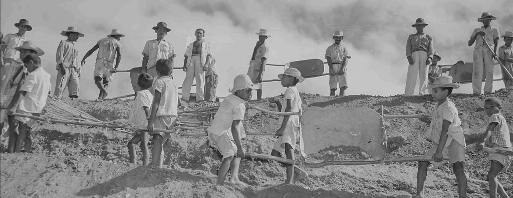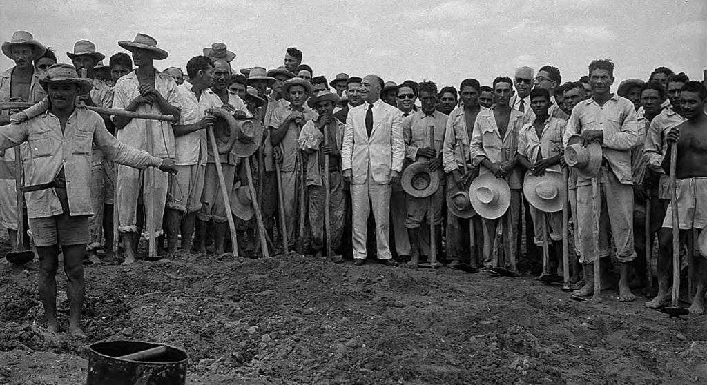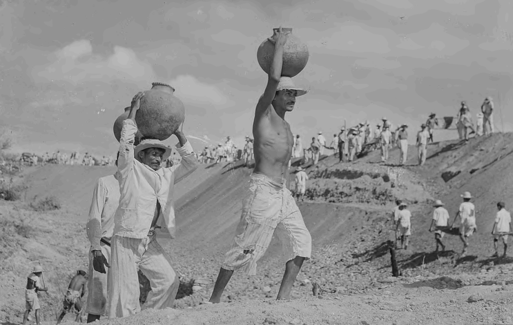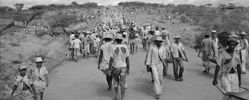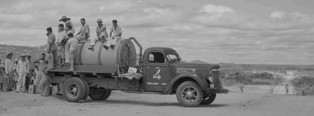 Político sendo fotografado ao lado de retirante nordestinos. Ótimo material de propagaranda.