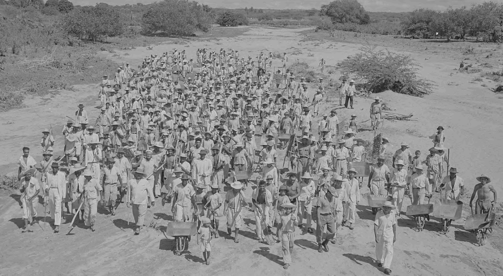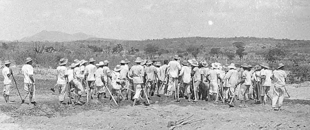 O engenheiro Matias Albuquerque assim comentou. – Temos 8.481 homens alistados na frente de emergência, divididos em turmas de 27, onde 25 são operários, um é feitor e um é cozinheiro. Eles se distribuem ao longo da estrada que vai de Piancó a Itaporanga e realizam serviços de conservação, como destocamento, limpeza de pontes, bueiros e drenagem. Enquanto conversa pede um filé mal passado ao garçom do bar “Pedregulho”, em Patos, toma uma cerveja, bebe um cafezinho, paga a conta e vai dormir. Mas antes completa – O alistamento dessa gente, que já invadiu Itaporanga e Ibiara, foi coisa de polícia.