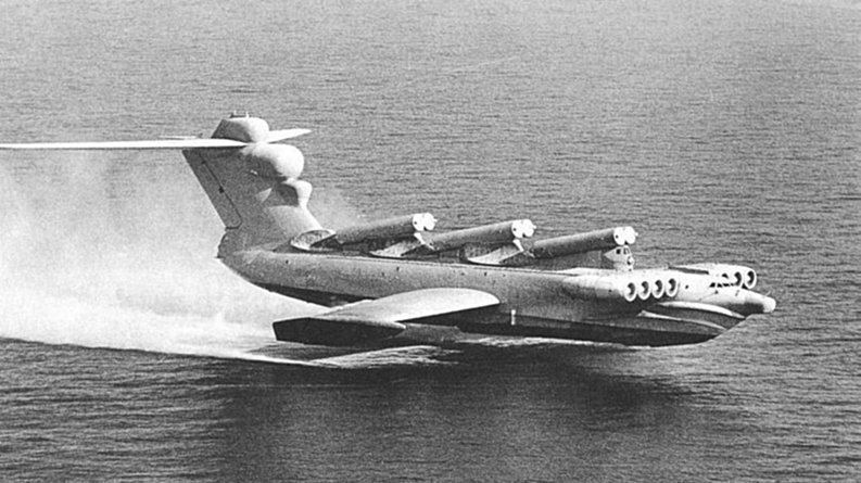 Um ekranoplano importante foi chamado o “Monstro do Mar Cáspio”. Designado como KM, tinha incríveis 100 metros de comprimento e 540 toneladas de peso máximo. Nada menos que 10 motores lhe davam a força necessária para ele se manter a uma altura de no máximo três metros de altura. Se subisse acima disso, poderia perder a sustentação e cair no mar. Voava em média a 30 cm de altura, enfrentando ondas de até cinco metros. Foi perdido em um acidente, onde se estatelou contra a água. Ao invés de descer o aparelho para ganhar sustentação, o piloto subiu, provavelmente pensando que estava em um avião comum. Tentaram resgatar o aparelho do fundo das águas, mas sua tonelagem impediu tal fato.
