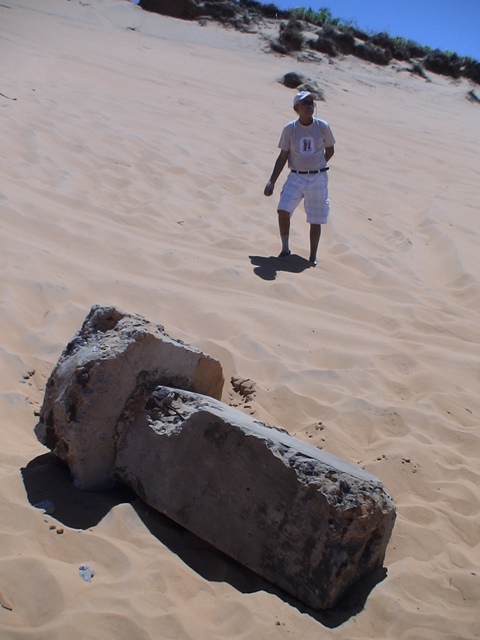 Seguimos a caminhada agora em aclive, devagar, em meio a um caminho de pedras soltas, que compõem o leito seco do rio que abastecia a antiga barragem. Ao meio-dia o calor era insuportável, mas a ideia de conhecer este estranho lugar animava o grupo. Durante esta parte do caminho, contemplamos muitos lajedos de pedras, que na época do inverno se transformam em corredeiras. Mais um declive para aliviar e depois mais um aclive para penalizar e o altímetro do GPS marcando uma altitude de 430 metros.