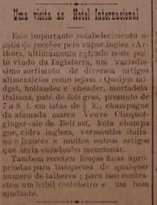 Como este comerciante ambulante chegou a nossa cidade eu não sei, mas certamente ele deve ter procurado algum dos locais de hospedagem existentes na Natal de junho de 1911. Vejam abaixo o que o afamado Hotel Internacional oferecia em termos de alimentação, bebidas e outros mimos vindos do exterior.