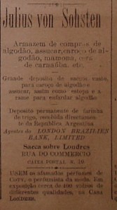 Mas havia casas comerciais de exportação para o mercado estrangeiro, de produtos típicos de nossa região, conforme podemos ver no anúncio da empresa do pernambucano de descendência holandesa Julius von Sohsten, que tinha fortes ligações com o Rio Grande do Norte.