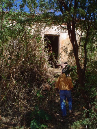 O mato é tanto, que só derrubando algumas plantas para entrar no local