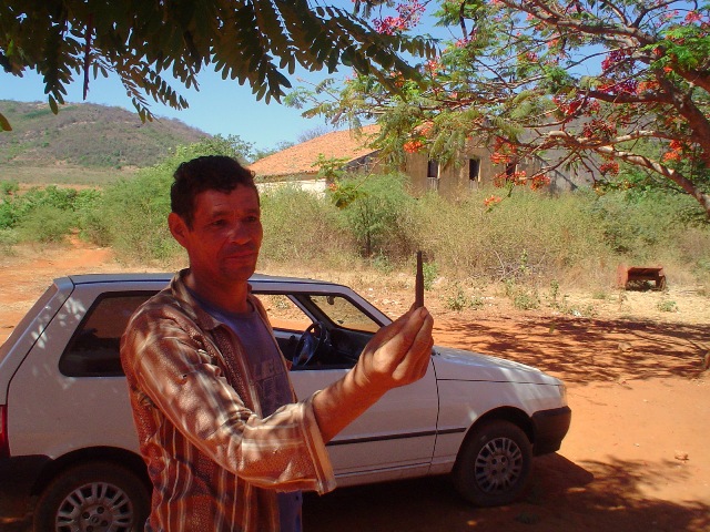 Fato comum; morador da região com um cartucho de fuzil Mauser intacto, encontrado ao arar o terreno próximo ao casarão.