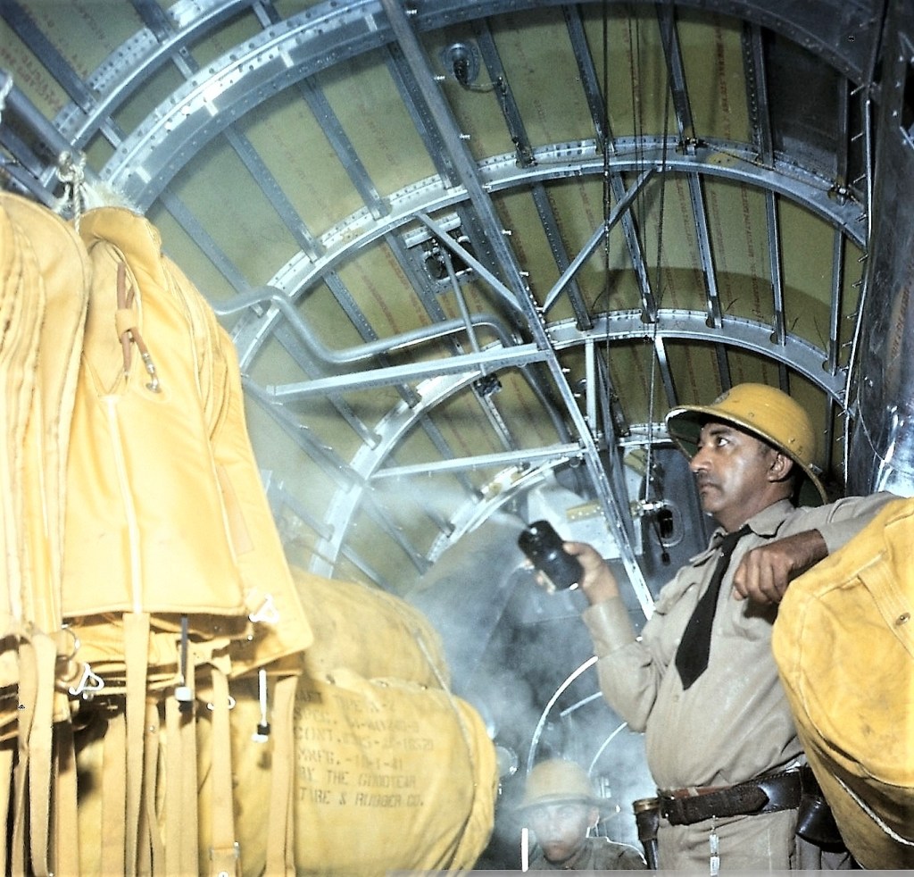 NATAL, BRASIL – JUNHO DE 1943: – Pulverização de um avião de transporte C-87 Liberator para controle da malária no aeroporto de Parnamirim – Foto de Ivan Dmitri/Michael Ochs Archives/Getty Images.