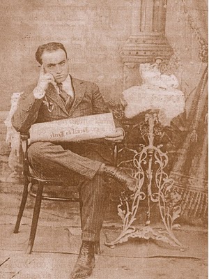 Benjamin Abrahão em fotografia realizada em um estúdio fotográfico pernambucano. A partir do livro “Lampião o mito”, autoria de Roberto Tapioca, 9ª edição, página 50.