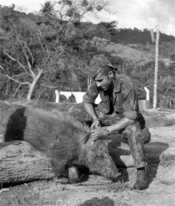 As florestas africanas era o local onde os portugueses muitas vezes conseguiam carne. Aqui vemos um javali sendo abatido – Foto – Mario Ferreira da Silva – Fonte – http://ultramar.terraweb.biz/index.htm