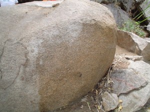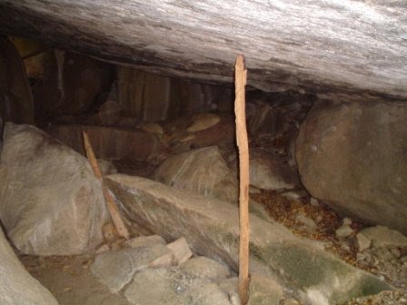 No interior da gruta encontramos estas duas estacas de baraúna. Segundo o pessoal da região, estas estacas estão aqui desde o tempo do cangaceiro Jesuíno Brilhante e serviam para armar uma rede. Posso garantir que desde 1998 elas estão lá, mas se foram colocadas na década de 1870, aí é outra história