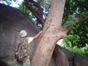 No local do olho d’água encontramos esta árvore marcada por disparos. As pessoas da região afirmam terem sido produzidas pelos cangaceiros. Mas esta versão, sem uma análise mais apurada, não pode ser confirmada.