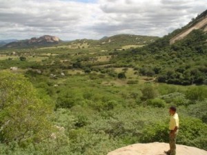 No alto da Gruta do Cangaceiro Jesuíno Brilhante, em 2008, ano de muita chuva. O cenário aponta em direção à sede da fazenda Cajueiro