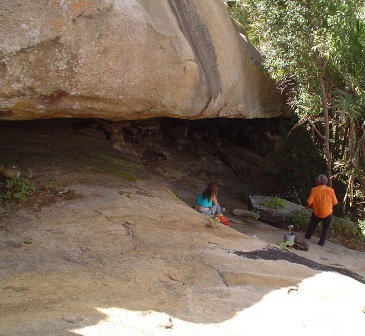 Devido ao nosso tempo curto, pedimos para conhecer a mais representativa em sua opinião. Ele escolhe para uma que sua mãe lhe contou ter ido a este local, ainda criança, levada pelo pai cangaceiro, para ver um dos seus companheiros de luta que se recuperava de um balaço recebido. Ela lhe contou que o cangaceiro se chamava “Dé Araújo”, que havia sido ferido no combate das “Piranhas”, sendo trazido nas costas dos companheiros, onde foi tratado com raízes e produtos naturais. Na medicina destes cangaceiros, eles utilizavam um cipó facilmente encontrado na serra, que chamavam “cipó de baleado”, onde o mesmo era pilado, colocado sobre a ferida da bala, que cicatrizava o ferimento.
