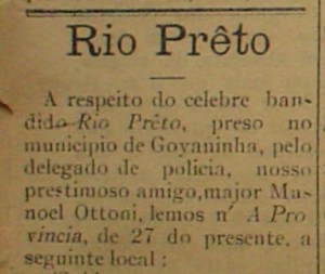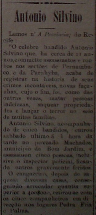 Notícia de 1874, com o ataque do cangaceiro Jesuíno Brilhante e seu bando na cidade de Pombal para libertar presos da cadeia local. Essa nota mostra o nível de periculosidade na região de Pombal na época e a necessidade dos comerciantes de utilizarem botijas para salvaguardar seus valores.