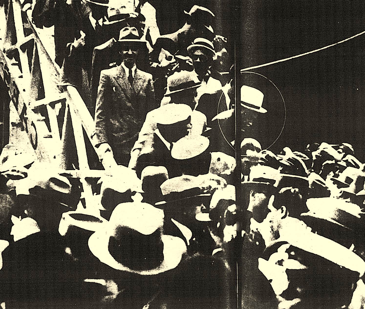 João Suassuna (com papéis e na mão), tendo ao seu lado esquerdo Washington Luís no Porto de Cabedelo, Paraíba.
