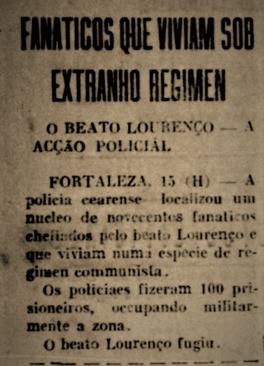 Na capa do jornal recifense “A Notícia”, de 26 de março de 1924,com a narrativa do combate da Lagoa do Vieira feito pelo major Ferraz.