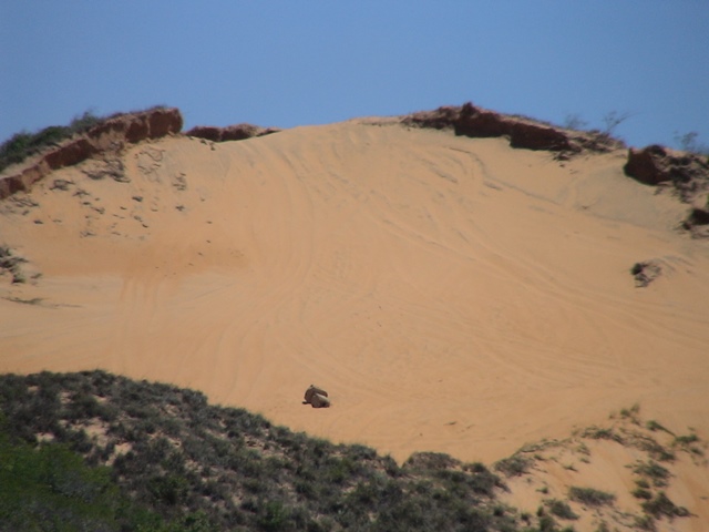 No meio do caminho tivemos de contornar um grande bloco esférico de granito, que de tão grande forma na sua base um interessante abrigo natural, que percebemos serem utilizados por pequenos animais.