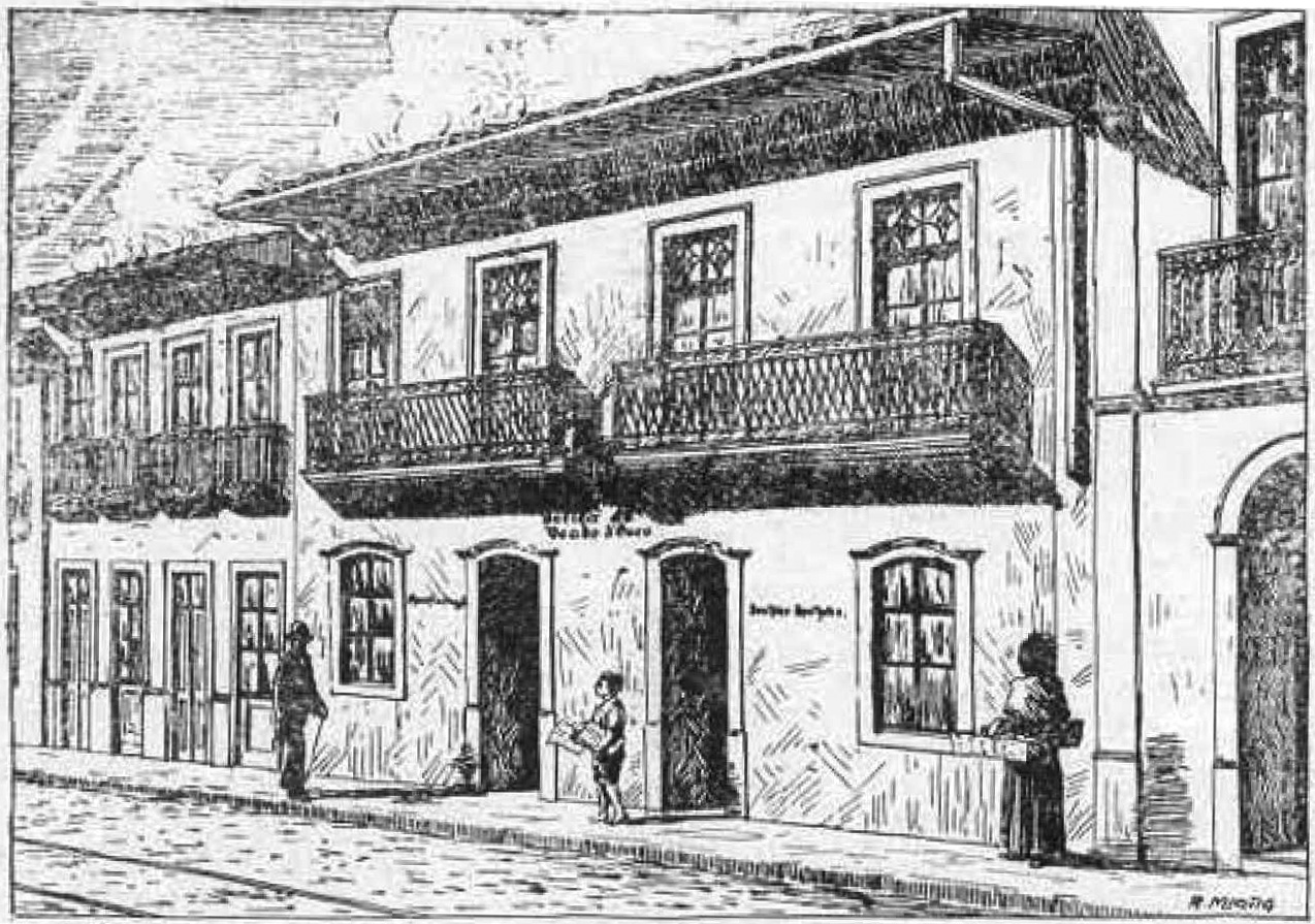 A fachada do prédio onde funcionou a botica de 1858 a 1921