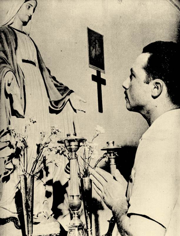 O ex-pracinha Luís, diante da imagem de sua santa padroeira, Nossa Senhora das Graças