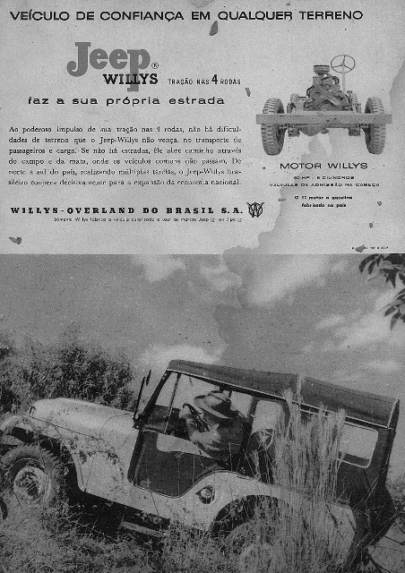 A Willys-Overland do Brasil foi fundada em 26 de agosto de 1952, na cidade paulista de São Bernardo do Campo. Em 1954, a empresa deu origem a produção de veículos com o nome de Jeeps Universal, correspondendo ao Jeep Willys modelo CJ 5, montados com peças trazidas dos Estados Unidos. Do ano de 1957 até 1959, quase todas as partes do veiculo foram fabricadas no Brasil. A partir de 1959, até o motor já era de fabricação brasileira. Em outubro de 1967, a Ford do Brasil assumiu o controle acionário da Willys-Overland do Brasil, herdando as marcas Jeep, Rural Willys, Pick-Up Willys, Aero-Willys, Itamaraty, Gordini e Interlagos. Em 1970, a Ford deixou de fabricar o Jeep e o Aero-Willys. Em 1986, quando a marca Jeep se encontrava sob controle da Kaiser Motors, a linha CJ foi substituída pela linha Jeep Wrangler. Coube a Daimler-Chrysler, em 2002, trazer de volta a marca overland, utilizada no Jeep Grand Cherokee.