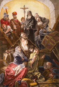 Uma das duas únicas gravuras sobreviventes até os dias atuais e intitulada em alemão “Von dem Christeliche – Streyt, kürtzlich geschehe – jm. M.CCCCC.vj Jar zu Lissbona – ein haubt stat in Portigal zwischen en christen und newen chri – sten oder juden, von wegen des gecreutzigisten [sic] got.” (Da Contenda Cristã, que recentemente teve lugar em Lisboa, capital de Portugal, entre cristãos e cristãos-novos ou judeus, por causa do Deus Crucificado”).