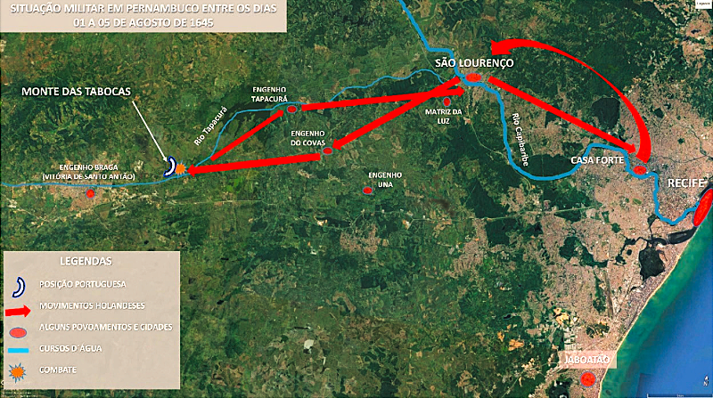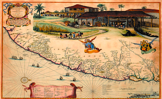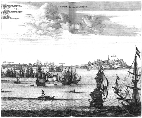 A costa norte do Brasil, ao redor do Equador, exatamente onde o litoral se curva para baixo, foi uma colônia holandesa por cerca de 25 anos. A região era então e ainda é chamada de Pernambuco. No litoral os portugueses fundaram os povoados de Recife e Olinda a partir de 1534 e começaram a cultivar cana-de-açúcar ali. Recife é hoje a capital do estado brasileiro de Pernambuco e tem mais de 1,5 milhão de habitantes. Olinda, próximo a capital, era muito maior por volta de 1630, mas hoje tem quase 400.000 habitantes.