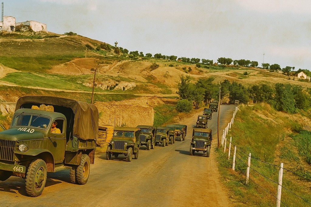 Comboio de viaturas da FEB rodando pela Itália – Colorizada por Ricardo Morais – @imagemepoesia.