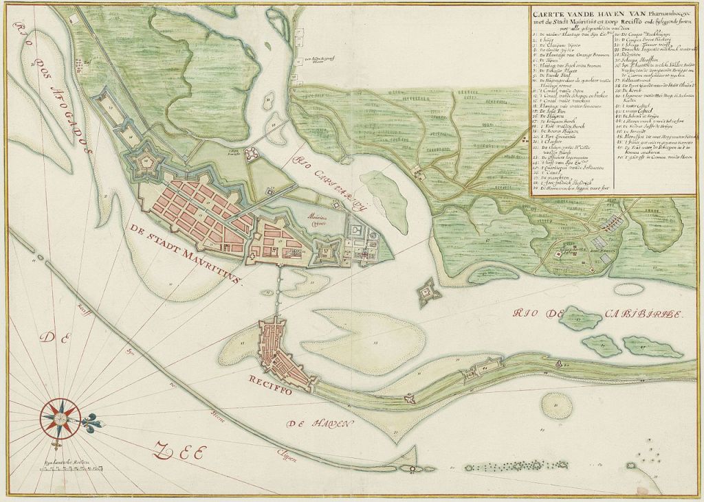 Recife no tempo dos holandeses no Nordeste do Brasil – Fonte – Rerum in Brasilia et alibi gestarum by Caspar Barlaeus.