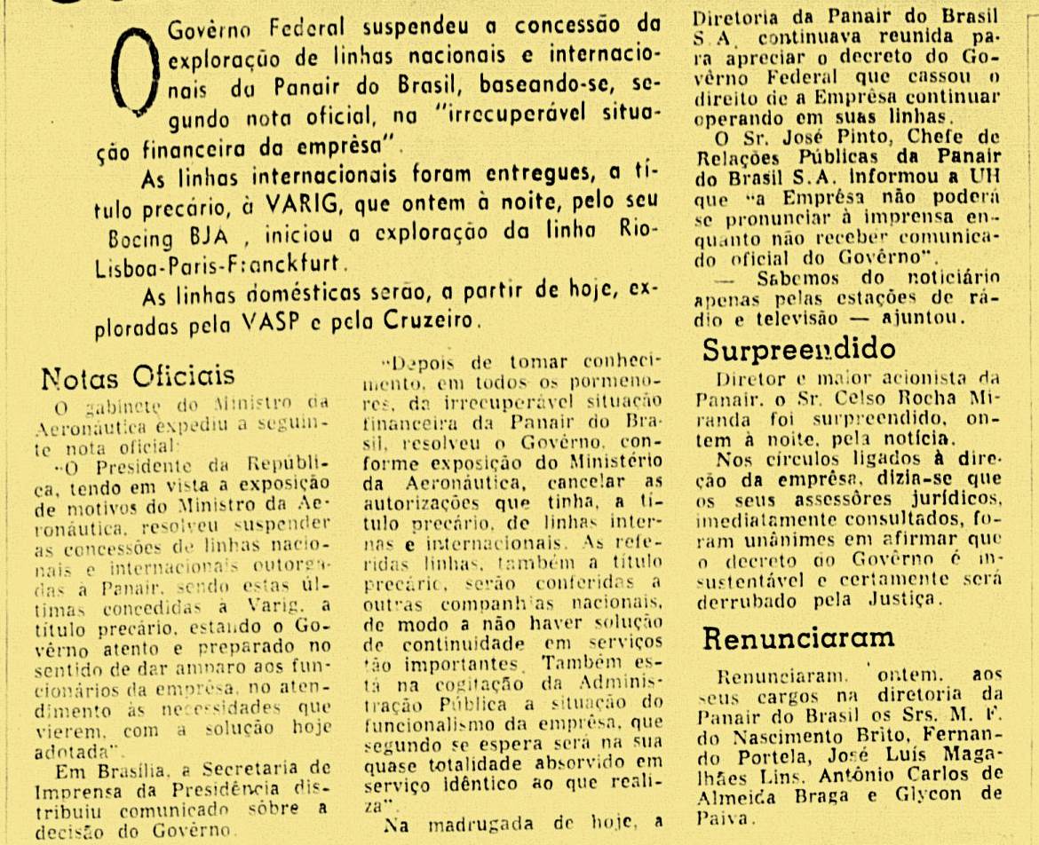 E tudo indica que Aderbal estava naquele sábado com sua atenção voltada para o terminal de passageiros da empresa aérea Panair, uma subsidiária no Brasil da empresa de aviação norte-americana Pan American World Airways, uma das maiores do mundo naqueles tempos.