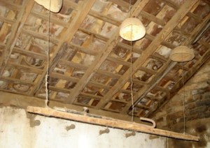 Local onde eram acondicionados os queijos produzidos na fazenda. As pequenas “meias luas” aqui mostradas, eram ali colocadas para evitar que ratos chegassem aos produtos