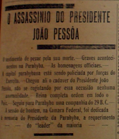[22] Ver jornal “A Noite”, Rio de Janeiro, edição de 11 de setembro de 1931, página 3. Por mais estranha que esta história de ficar de joelhos diante do caixão de João Pessoa possa parecer, naquela época, naquelas circunstâncias, isso aconteceu de verdade. Na capital paraibana o nível de fanatismo em 1930 era tal, que se alguém tocasse em um local público uma certa música criada para homenagear o morto ilustre, e alguém gritasse um sonoro “De joelhos!”, aí de quem não cumprisse a ordem. Ou era surrado, ou preso! Em outros estados também ocorreram muitas manifestações radicais. No Rio Grande do Norte, como consequência direta das mudanças das mudanças políticas da Revolução de 1930, a campanha estadual de 1934 foi uma das mais violentas da história política potiguar, com vários mortos em meio a inúmeras arbitrariedades.