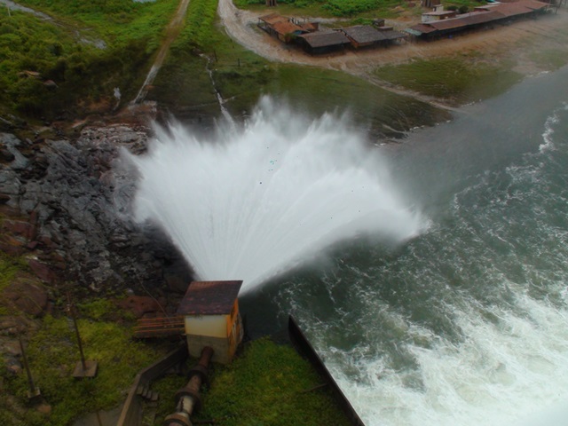 Membros da unidade de controle da malária pulverizando uma área alagada.