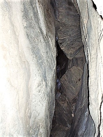 Durante nossa exploração, infelizmente não foi encontrado nenhum registro de pinturas rupestres, ou de material lítico, ossos ou de outros vestígios que indicassem ter sido o local utilizado em tempos passados e que ali ocorreu uma grande atrocidade. Existe um local onde o solo é composto de sedimentos e uma escavação poderia, ou não, comprovar se o abrigo foi utilizado pelo grupo descrito no antigo artigo. Neste local, a leitura do altímetro do GPS confirmou 743 metros de altitude.