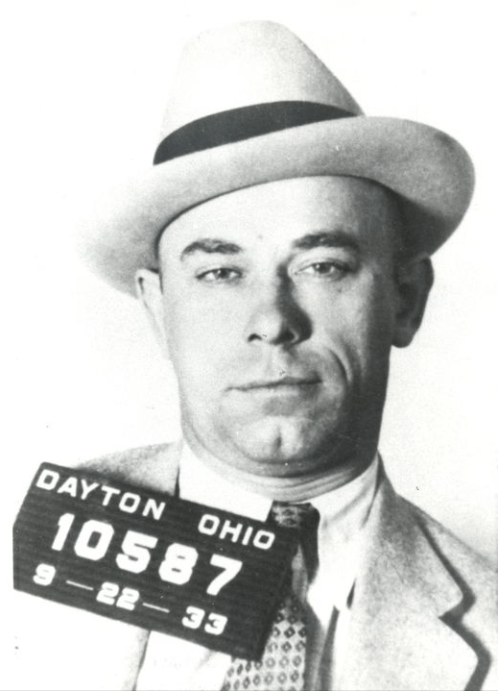 Faltando um dia para completar um mês de sua liberdade, Dillinger cometeu seu primeiro assalto a banco. Foi em 21 de junho de 1933, na localidade de New Carlisle, no estado de Ohio, onde roubou com dois comparsas 10.000 dólares (equivalente em janeiro de 2026 a 250.000 dólares, ou cerca de 1.350.000 reais). Tempos depois, em 14 de agosto, ele e seus asseclas assaltaram o banco de Bluffton, também em Ohio. Mas dessa vez ele foi rastreado pela polícia e capturado. Ficou preso na cadeia do Condado de Allen, na cidade de Lima, Ohio, e parecia que suas perspectivas futuras se tornaram bem complicadas!