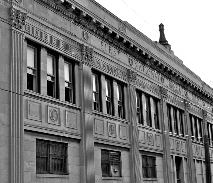 As duas e quarenta e cinco da tarde, um grande Studebaker estacionou em uma colina ao lado do banco e quatro homens entraram: Dillinger, Pierpont, Makley e Clark. Pierpont dirigiu-se até um dos caixas para trocar uma nota de 20 dólares e quando o funcionário lhe disse para ir a outro guichê, Pierpont sacou sua metralhadora Thompson e colocou na cara do sujeito. Os outros membros da quadrilha sacaram suas armas e começaram a retirar dinheiro dos cofres. Testemunhas identificaram claramente Pierpont como o líder dos assaltantes. Cinco minutos depois, o assalto havia terminado e a quadrilha saiu sem disparar um tiro e levando 74.000 dólares em dinheiro e títulos. Eles foram tão silenciosos que ninguém na delegacia do outro lado da rua sabia o que havia acontecido.