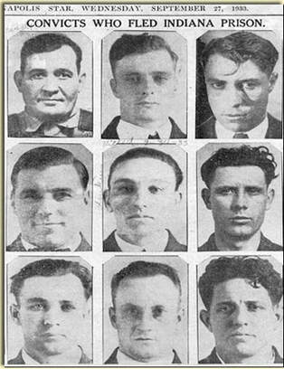 Foi quando no dia 22 de setembro, dez de seus colegas de cárcere fugiram da Prisão Estadual de Indiana. Desses homens quem continuou mais tempo com Dillinger foram principalmente Harry Pierpont[6], Charles Makley[7], John Hamilton[8] e Russell Clark[9]. A evasão desses homens, que atiraram em dois guardas na ocasião, havia sido anteriormente arquitetada e apoiada por Dillinger. Quando eles souberam da sua prisão, decidiram resgatá-lo.