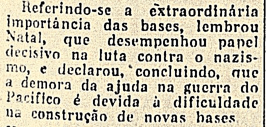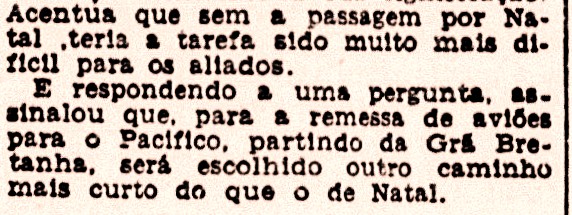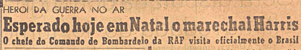 Apesar de parecer uma visita rápida, protocolar e simplória, o que mais me chamou a atenção foi encontrar várias declarações que Arthur Harris fez aos jornalistas brasileiros sobre a importância de Natal e sua grande base aérea para o esforço de guerra. Trago aqui duas destas declarações que foram publicadas em jornais cariocas.