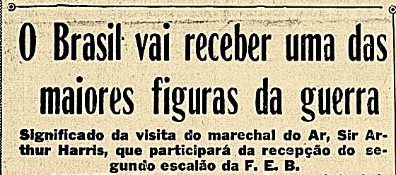 A razão divulgada nos jornais brasileiros para o comandante inglês sair da distante e fria Inglaterra para o nosso caliente e varonil país, seria assistir no Rio de Janeiro ao desfile da chegada do 2º escalão da Força Expedicionária Brasileira. Ao menos isso foi o que publicou com destaque os jornais cariocas, mas Harris só chegou três dias depois que nossos pracinhas da FEB desfilaram pelas ruas do Rio e ninguém explicou a razão da sua não participação!