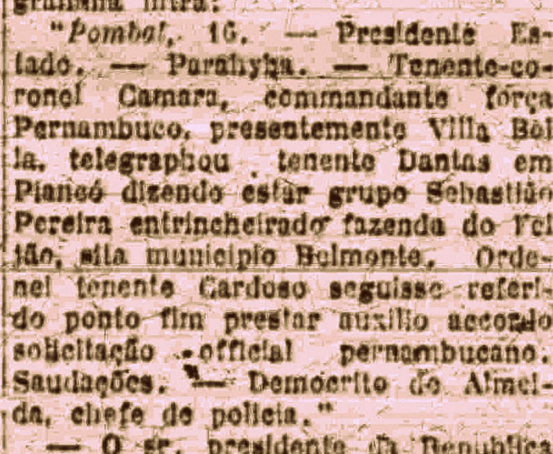 [3] Ver jornal “A Província”, edição de 11 de março de 1923, pág. 2. Hemeroteca do Arquivo Público do Estado de Pernambuco. A carta do misterioso “Um Assignante”, publicada em quase um ano após os fatos “A Província” , corrobora a tradição oral da região em muitas informações.