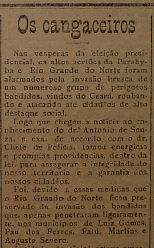 Não é novidade que a pesquisa em jornais antigos, associada à pesquisa em livros, artigos em revista, internet e, obviamente, a uma pesquisa de campo junto aos descendentes dos que presenciaram os fatos, se não traz nenhuma grande informação bombástica, mostra que é sempre possível conseguir novos detalhes e informações sobre o cangaço que, como me disse em certa ocasião um respeitado autor do tema “-São fontes de informações pequenas, mas que sempre dá para saciar a todos”.