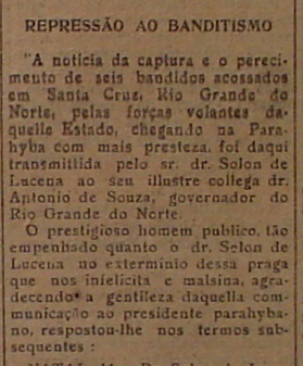 [7] Para muitos esta seria a primeira grande proeza de Lampião e seu bando, tendo o fato sido noticiado com destaque nas edições de 5 e 7 de julho de 1922, no respeitado periódico “Diário de Pernambuco”.